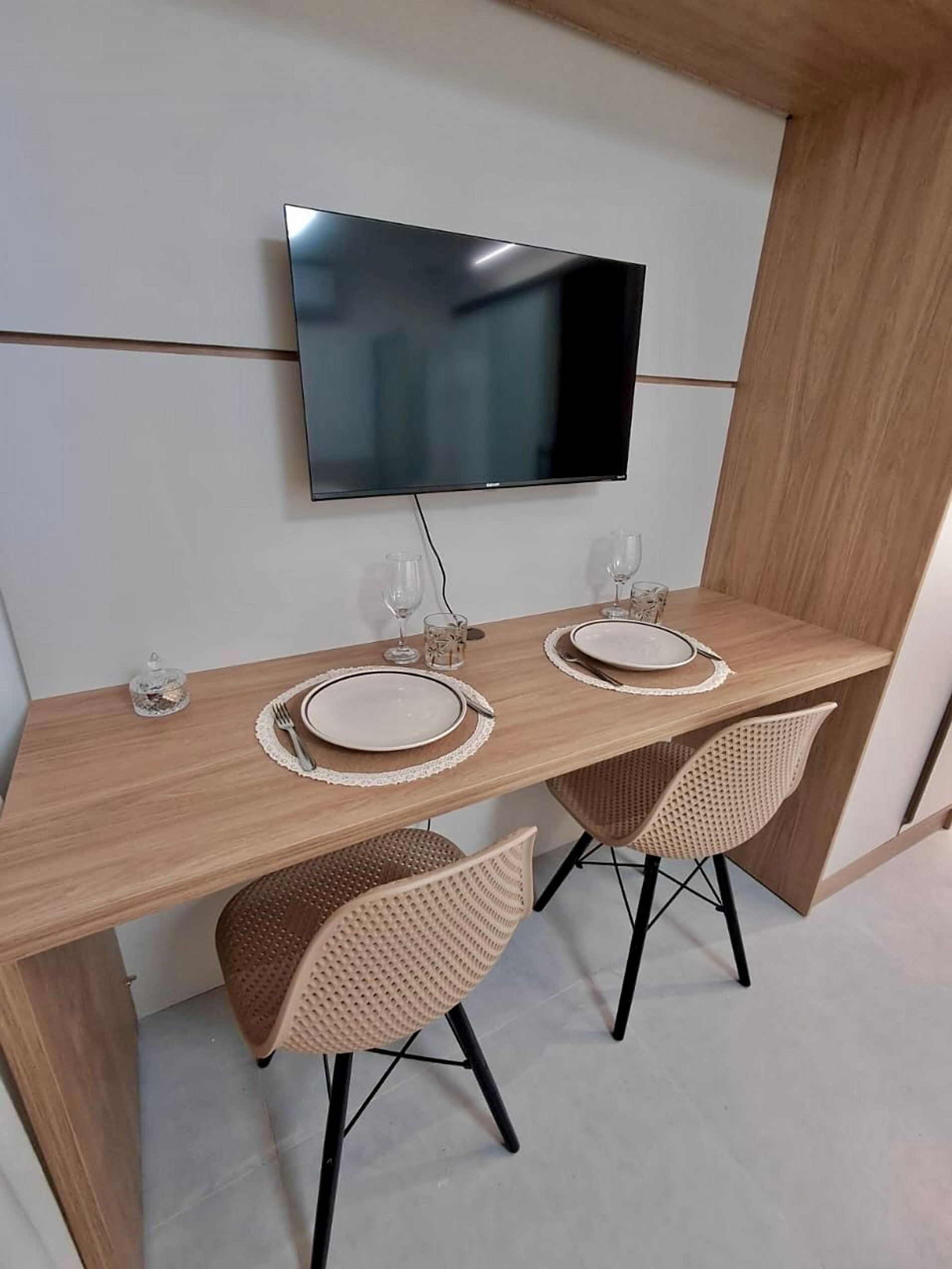 • Mesa embutida com três lugares;